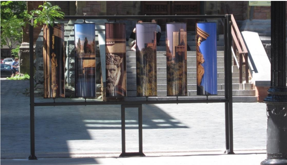 Inspirées des moulins à prières tibétains, ces installations artistiques se composent de 6 rouleaux verticaux, sur lesquels sont imprimées des photographies ou des œuvres d’art. Le thème : l’effervescence créative de la rue Parthenais.