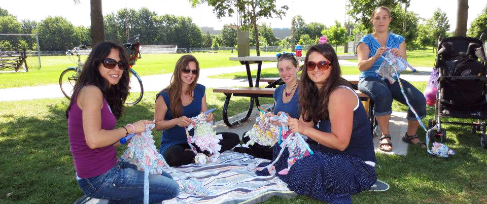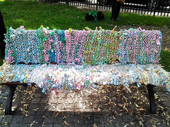 Grâce à des séances de tricotage organisées en plein air, au marché Atwater et dans une douzaine d’organismes communautaires, 300 citoyens de tout âge ont pu participer à la création d’une cinquantaine d’oeuvres artistiques éphémères, qui recouvriront les bancs du parc Garneau.