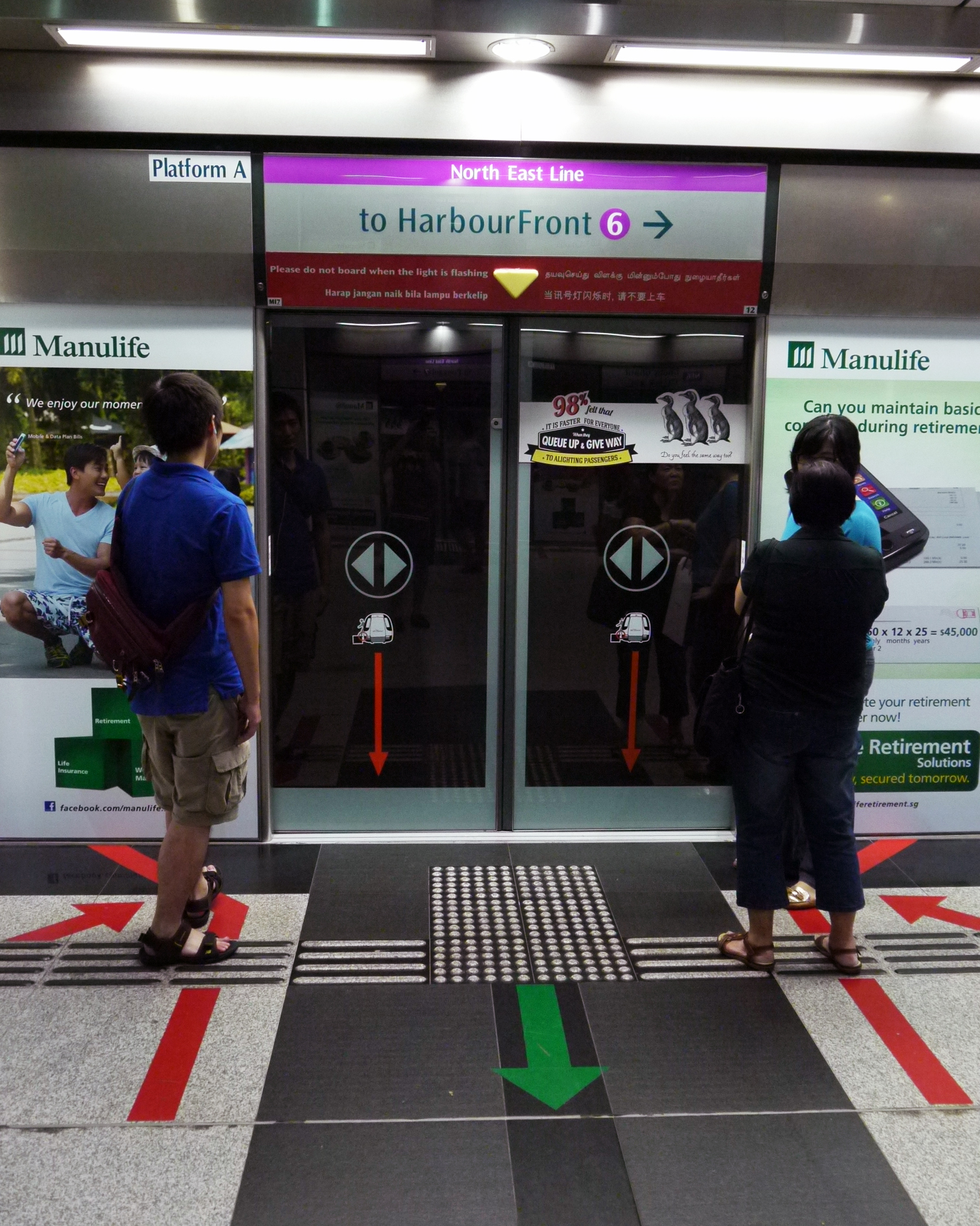 Les stations [climatisées!] sont d’une propreté exemplaire. Pas un papier jonchant le sol, pas une trace de boisson gazeuse sur les quais. Il faut dire qu’il est interdit de boire ou de manger à l’intérieur des stations depuis 1987. Même la gomme à mâcher constitue une violation. C’est une question de propreté publique. Un peu sévère, me direz-vous ? Peut-être, mais le résultat est frappant.
