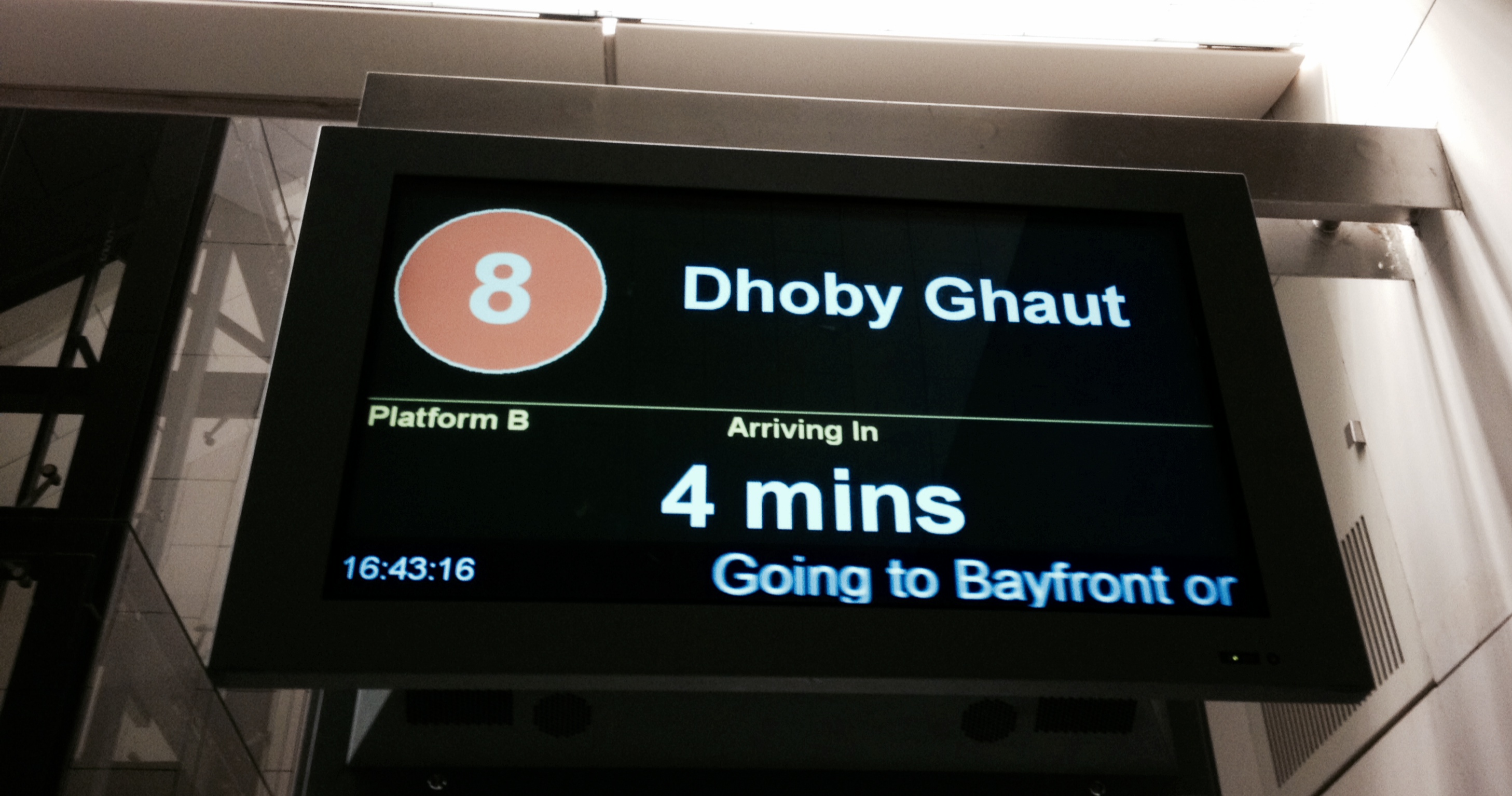 Dès que l’on franchit les tourniquets, un écran plat nous indique le temps restant avant le passage des prochains trains. On sait donc en temps réel la vitesse à laquelle nous devons nous rendre sur le quai, ce qui peut parfois nous éviter de courir inutilement.